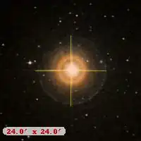 c. The image at SIMBAD for the star [at left], also called Gliese 35, shows a split color image of the star (assume the position of the star is between the two color spots), where the image is 2.4' x 2.4'. The star is not at the coordinates but along the line of travel. If the star slowed down between these two images, what is its speed in the SIMBAD image?