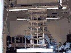 18-story model on earthquake protectors: shake-table test at UCSD outdoor facility.