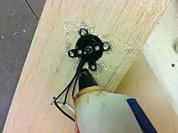 Working with the Aruduino and ESC/Motor became the primary focus for the team with the secondary being working on flying the quadcopter and finding ways to improve safety. While programming the Arduino to control the motor was not a problem, although the length in time for the motor to respond was, getting the motor mounted was. Brought up as a safety issue by Mr. Foerster, Rhea, WFalak and Truong worked on mounting their motors. Both succeeded through trial and error, resulting in better odds they would keep their fingers. Faissal continued work on improving safety for flying the AR Drone, especially for first-timers. He measured out a possible space behind the classroom outside for a area that would covered by netting that allows for safe flying for both the person controlling the drone and the drone itself.