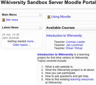 If you are new to Moodle or if you want to learn how to create and manage a course using Moodle, you are invited to use the http://sandbox.wikiversity.wmflabs.org/moodle/ which runs on the WMFLabs server.