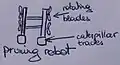 • Most of the robots (an exception being the robotic lawn mower) are to use 2 caterpillar tracks with the area for the tool being placed in the middle body (between the tracks).
