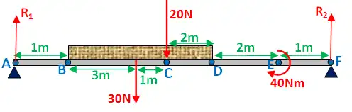 Just after: bending moment at C = 3·30 - 1·40 - 20 = 30Nm