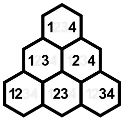 ![]() Triples linked by an edge differ in only one digit. The edge color tells by which: 1st, 2nd, 3rd |