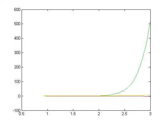 Plotting the aboved vector of y-values,along with the results from earlier yields the following graph: