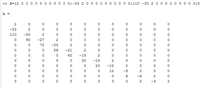 Finally, we write out the matrix equation for n=11: