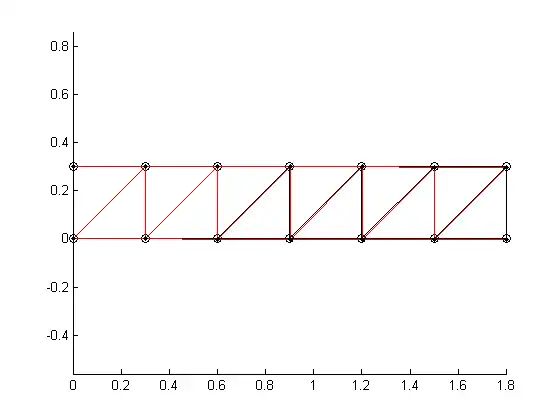 Lastly we determine the stiffness matrix by the coefficients in front of and . Which is: